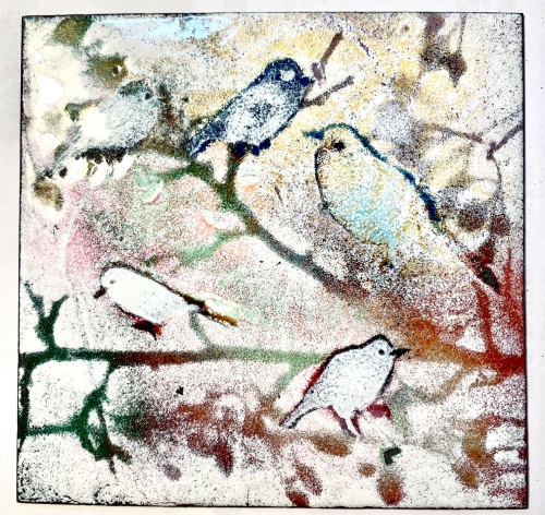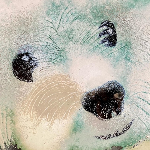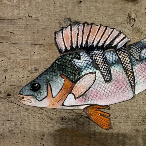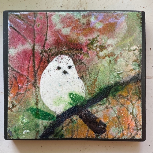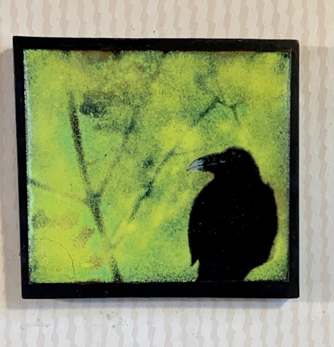 Bilderna är gjorda med emaljpulver som bränns fast på kopparplåt. Det kan bli upp emot 5 omgångar i 800° i ugnen innan bilden är klar. Sedan monteras den på trä, antingen drivved eller annat som Ann-Christin tycker passar bilden.