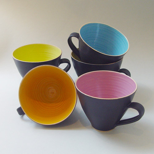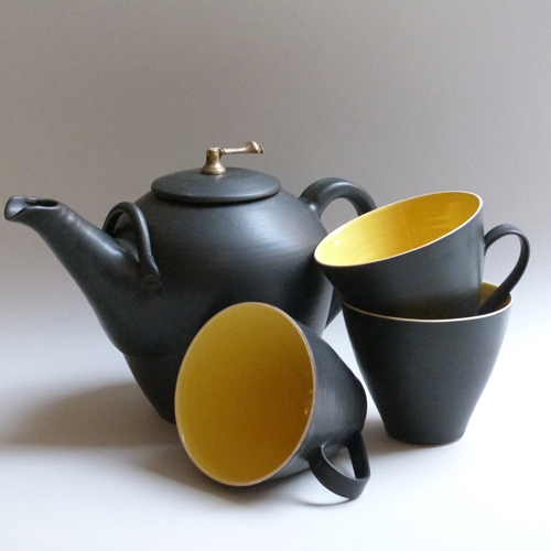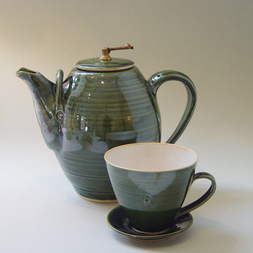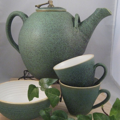 Hon drejar enkla, funktionella bruksföremål i stengods såsom kannor, krukor, fat och muggar samt kavlar och bygger större reliefer (offentlig utsmyckning Guldkrokskolan Hjo).